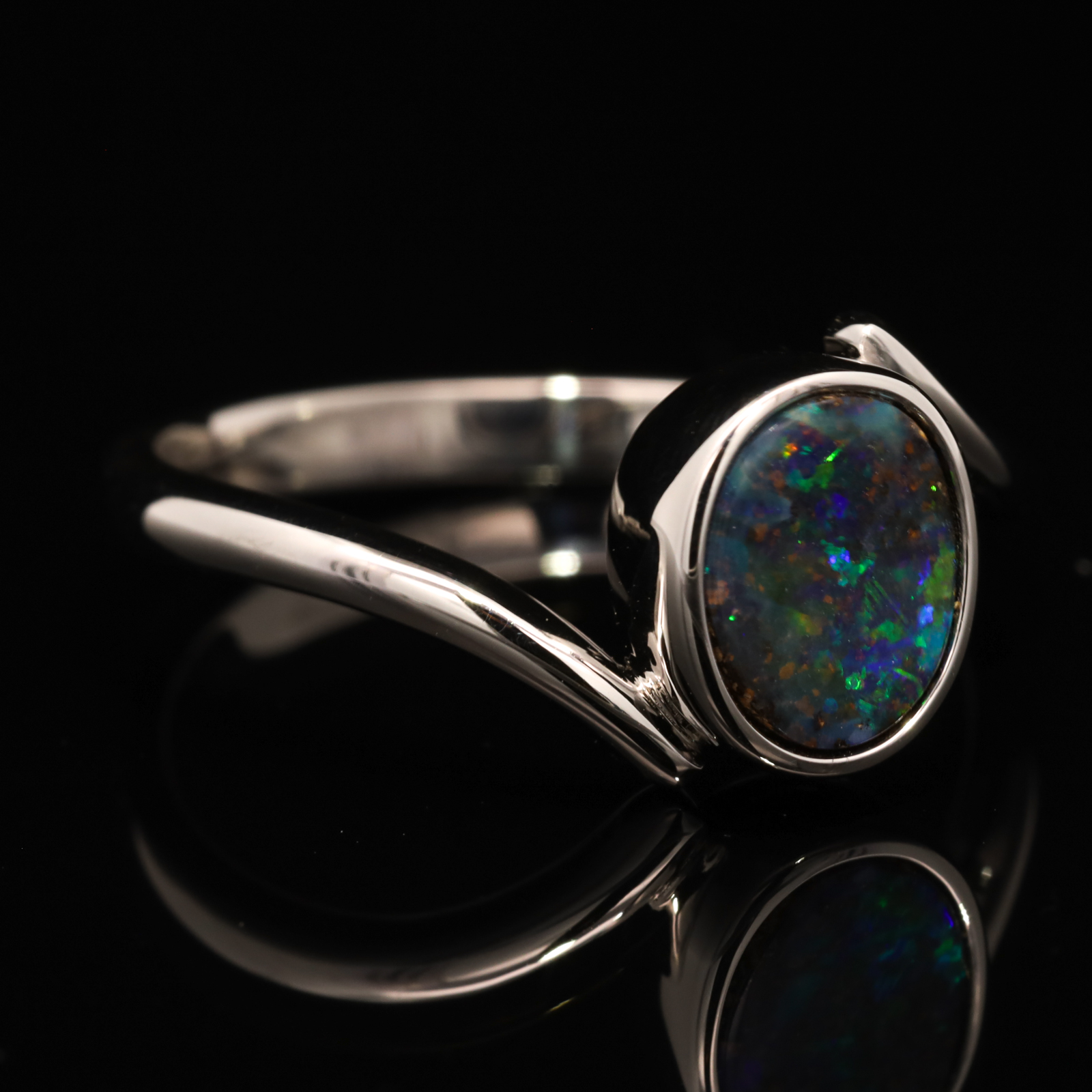 Solid Boulder Opal Ring